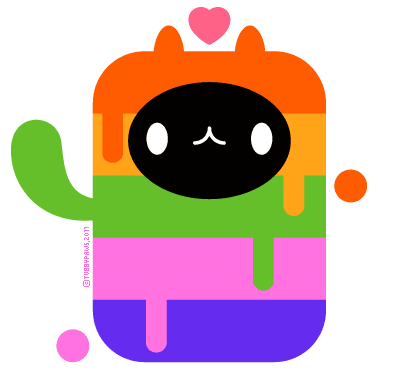 kitty is in a rainbow tube with love